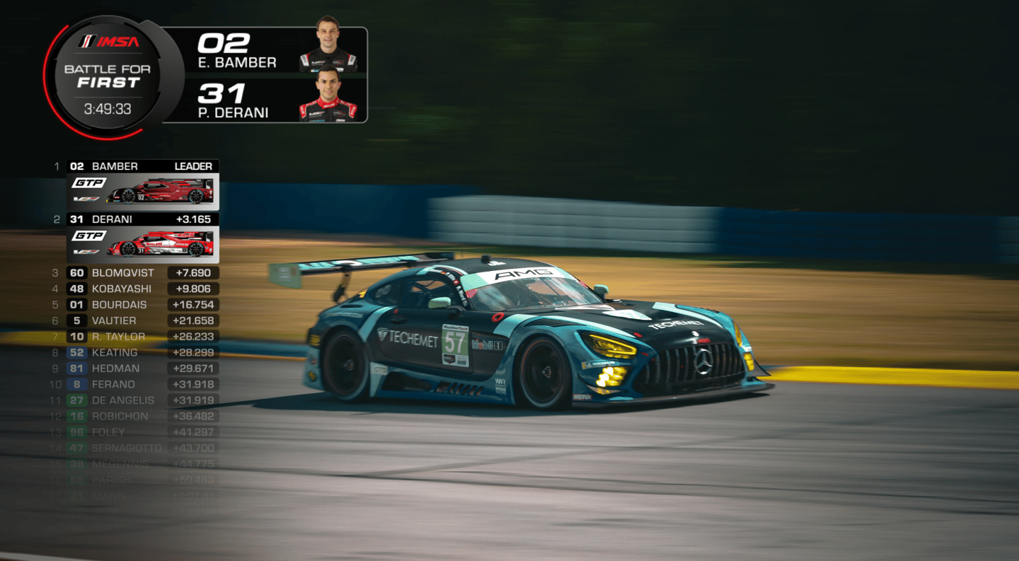 Our design team researched and explored a variety of directions to create a new design system for the IMSA World Feed broadcast. We aimed to create a more modern, fresh, yet sophisticated look and feel for the package.