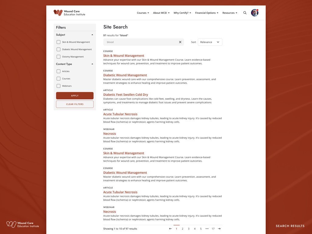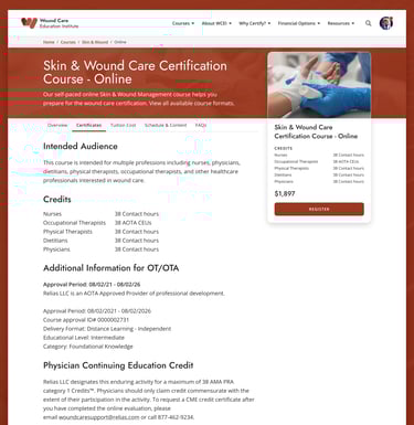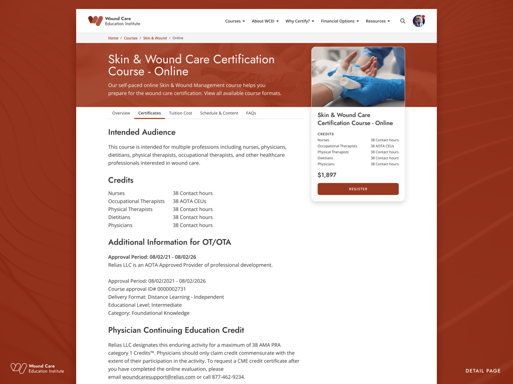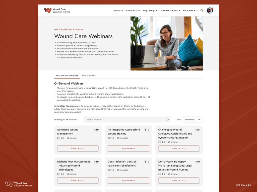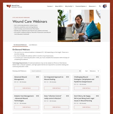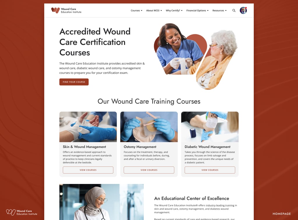 WCEI (Wound Care Education Institute) provides continuing education courses for healthcare professionals. In 2024, the organization initiated a full site migration from Kinteco to a new Craft/Magento CMS. This migration offered an opportunity to modernize the site’s interface, improve UX across key flows, and align with updated brand guidelines—all while preserving SEO performance.